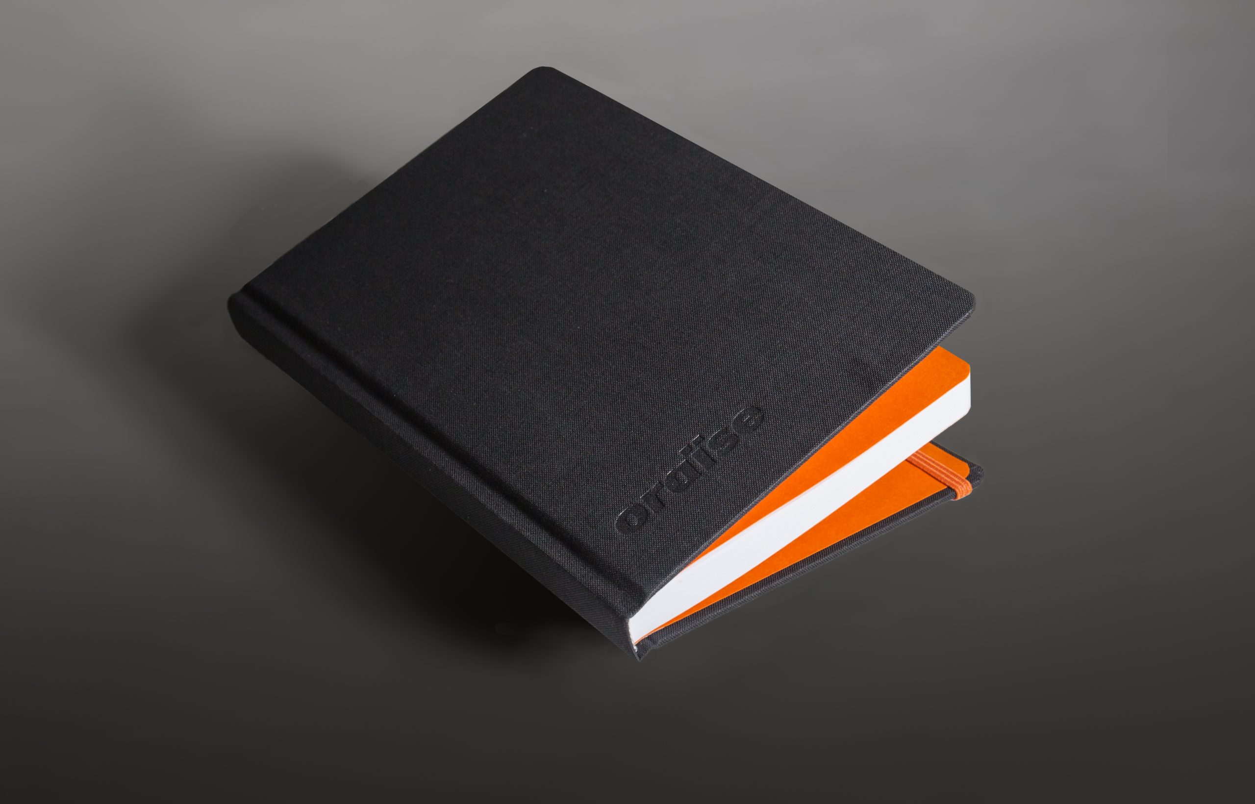 Wir produzieren solche Notizbücher genau nach Ihren Wünschen, abgestimmt auf den Endkunden bzw. die Zielgruppe. Sprechen Sie mit uns. Wir finden die Lösung, die genau zu Ihnen passt. Verantwortlich für das Design dieses edlen Stücks ist die Agentur 2Sinn in Königstein, ein langjähriger, ausgesprochen netter und sehr kreativer Kunde. Genutzt wird das Notizbuch von Oraise in Frankfurt. Chapeau!