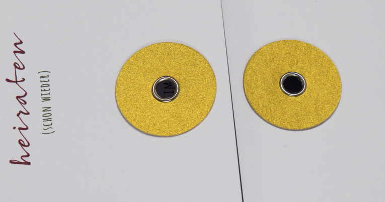 Solche emotionalen Schmuckstücke eignen sich nicht nur für Hochzeitseinladungen sondern auch immer dann, wenn die Zielgruppe passt und Sie sich wohltuend von der Masse abheben wollen. Die Formate, Materialien und Ausführungen sind beliebig kombinierbar. Die Mechanik ist immer die gleiche: 2 Rundösen halten die Verschlussringe, um die anschließend ein farblich passender Faden gewickelt und verknotet wird.