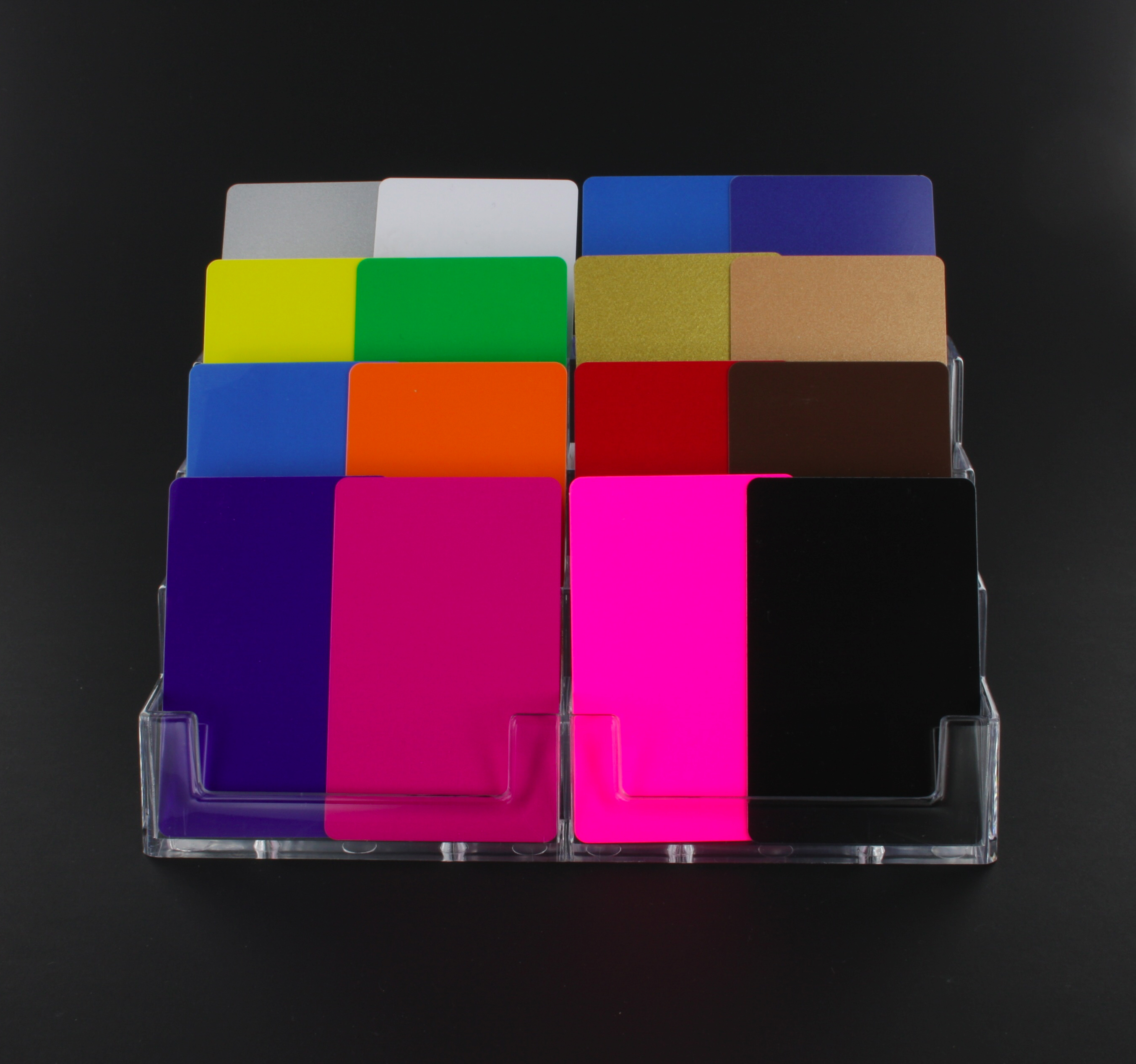Wie bereits berichtet, produzieren wir ab sofort Scheckkarten in deutlich verbesserter Qualität. Netter Nebeneffekt: Es sind auch mehr als ein Dutzend vollfarbige Scheckkarten bedruckbar. Bedenken Sie bei Ihren Kreativausbrüchen bitte nur, dass die Druckfarben lasierend sind. Also der Untergrund der farbigen Karte durchschlägt und somit das Aussehen verändert. Bei Druck in schwarz ist das natürlich kein Problem. Die farbigen Karten sind etwas teurer als die weißen Standards. Wir machen Ihnen gerne ein Angebot.