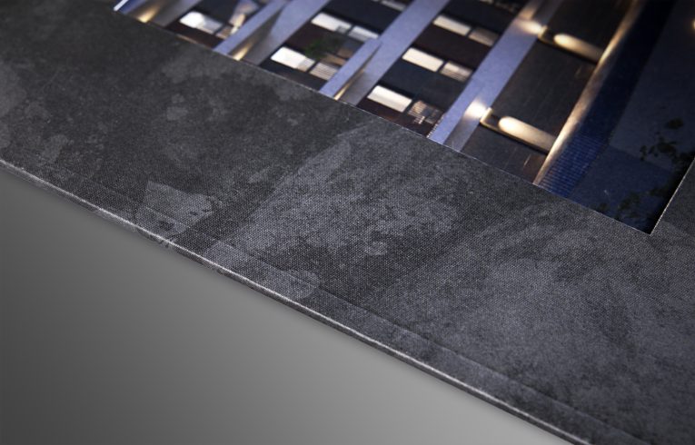 Das war mal wieder eine typische Aufgabenstellung von einem unserer Lieblingskunden, sumner groh + compagnie: Die aufgedruckte Steinoptik für das Softcover Booklet sollte auch fühlbar sein. Gleichzeitig ist die Seitenzahl innen nicht für eine Rückenheftung geeignet sodnern nur für eine Klebebindung. Und die geht mit dem recht hohem Farbauftrag auf dem struktriertem Papier (das die Steinhaptik simuliert) nicht besonders pfleglich un. Da werden Falzkanten angekratzt und es gibt gerne etwas Weißbruch.