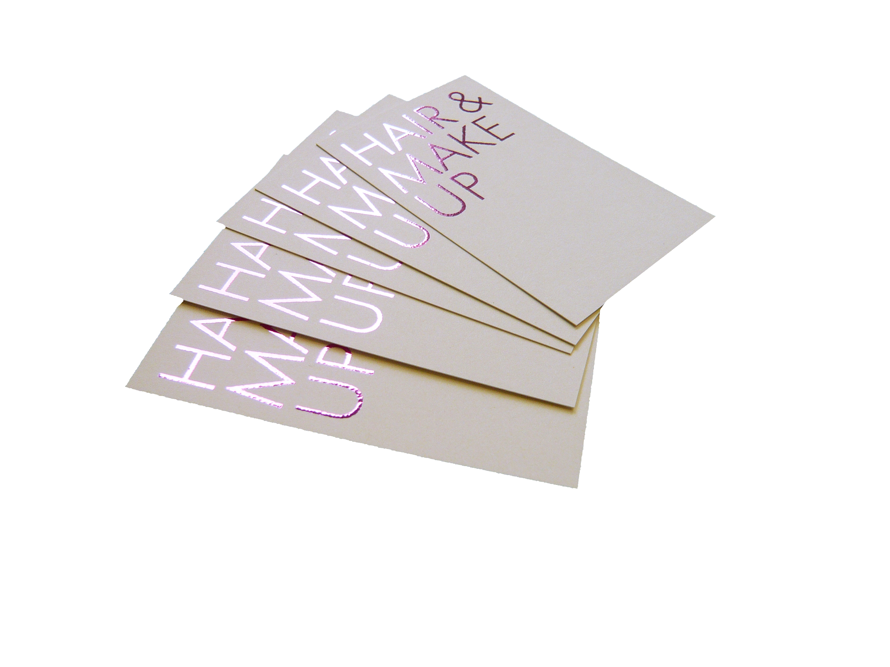Ganz ohne Werkzeugkosten entstehen diese Heißfolienveredlungen im Digitaldruck. Allerdings gibt es Einschränkungen gegenüber der klassischen Heißfolienveredlung mit Stempel und Prägepresse. Zu den Details: Digitale Heißfolienveredlung.