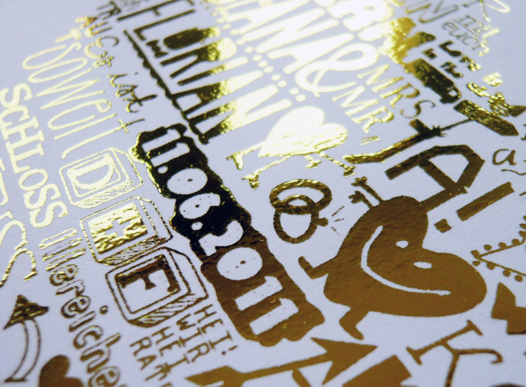 Unsere Heissfolienveredlung kommt nach anfänglichen Kinderkrankheiten besser in Schwung. Wenn man die Veredlung auf zuvor mit Relieflack gedruckten Elementen anwendet, ergibt sich sogar ein fühlbarer 3D-Effekt.
