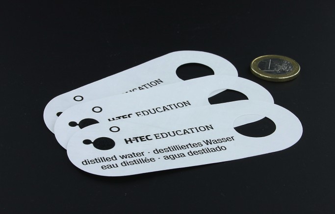 Digitaldruck und digitale Stanzung machen auch Produkte möglich, die eigentlich nur in Großauflagen hergestellt werden. Die Anhänger sind aus Original-Tyvek und damit reiß- und wasserfest. Das Rundloch wurde zusätzlich mit 4 kleinen Schlitzen erweitert, sodass der Anhänger über einen Flaschenhals passt, dann ein wenig „verriegelt” und damit nicht mehr so einfach herunter rutschen kann.